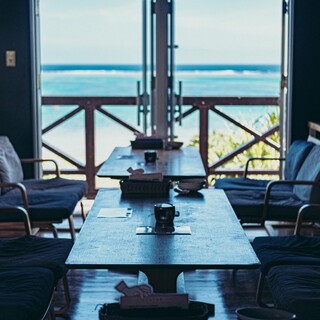 海からの潮風を浴びながら過ごす、心地よい時間と落ち着いた雰囲気が魅力のカフェ。広々とした店内は日光の差し込みかたまで設計されていて、まるで外にいるような開放感に包まれます。